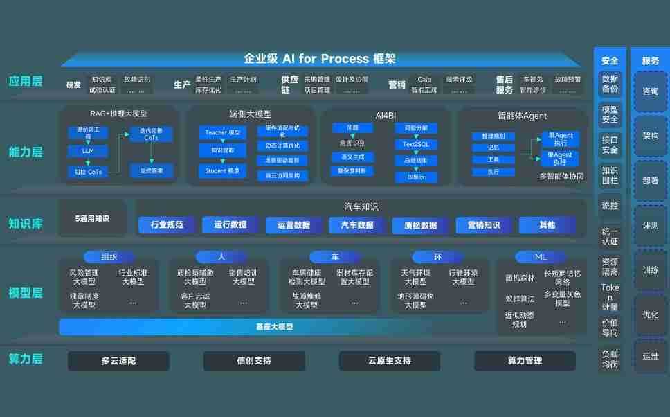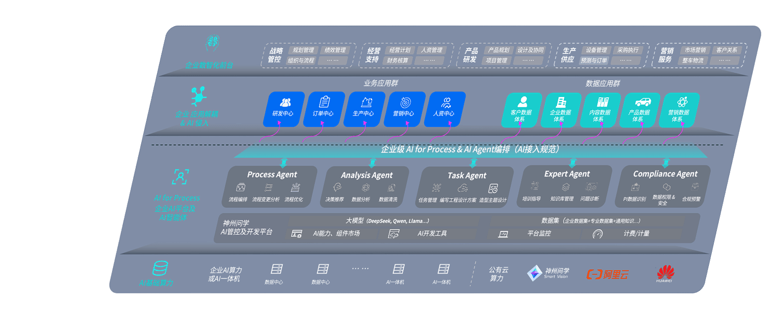 尊龙z6问学智车解决方案是一套基于AI技术的汽车行业智能化系统,,覆盖从底层算力到顶层AI应用的全栈方案。。。。方案由算力层、、模型层和应用层组成:算力层,,,,方案支持多种一体机配置,,,具备云端灵活部署、、、、多云适配以及动态优化计算资源的能力;模型层,,,,尊龙z6问学平台版提供了企业级AI应用一站式构建与管理平台,,,支持基于后训练强化技术的汽车企业专属模型的训练、、、、评测和运营;应用层,,尊龙z6问学DeepSeek版提供包括超级员工、、智能招采、、智能营销、、智能客服、、、、AI for BI等一系列解决方案,,,,可助力汽车行业实现数字化转型,,,让管理更智能、、响应更敏捷。。。
