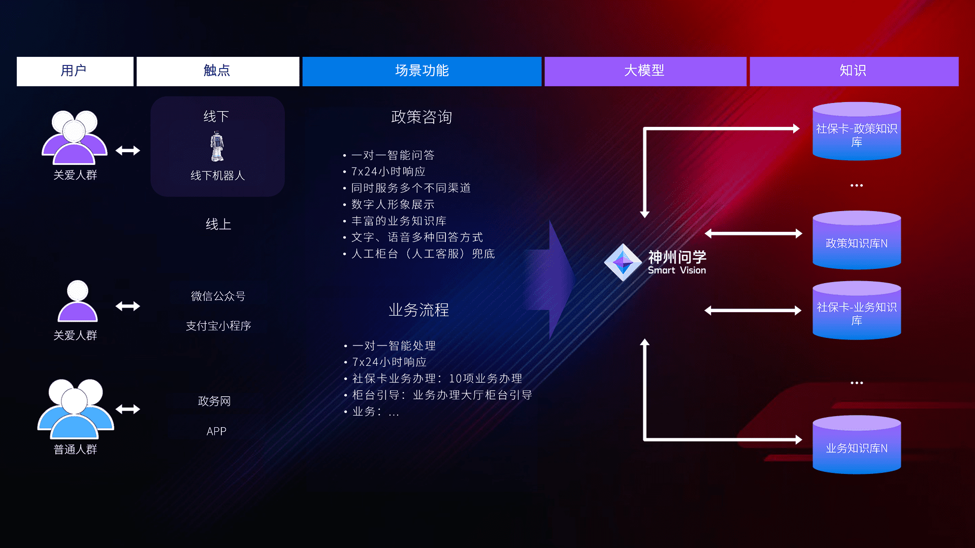 • 线上线下全覆盖:线上提供微信公众号、、、、支付宝小程序、、政务网、、、、app多种渠道,,与线下机器人形成完整服务体系。。